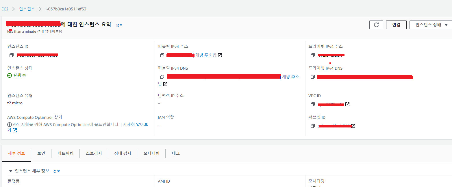 9. 인스턴스 ID를 클릭하면 인스턴스의 주소 등 상세정보를 볼 수 있다.
